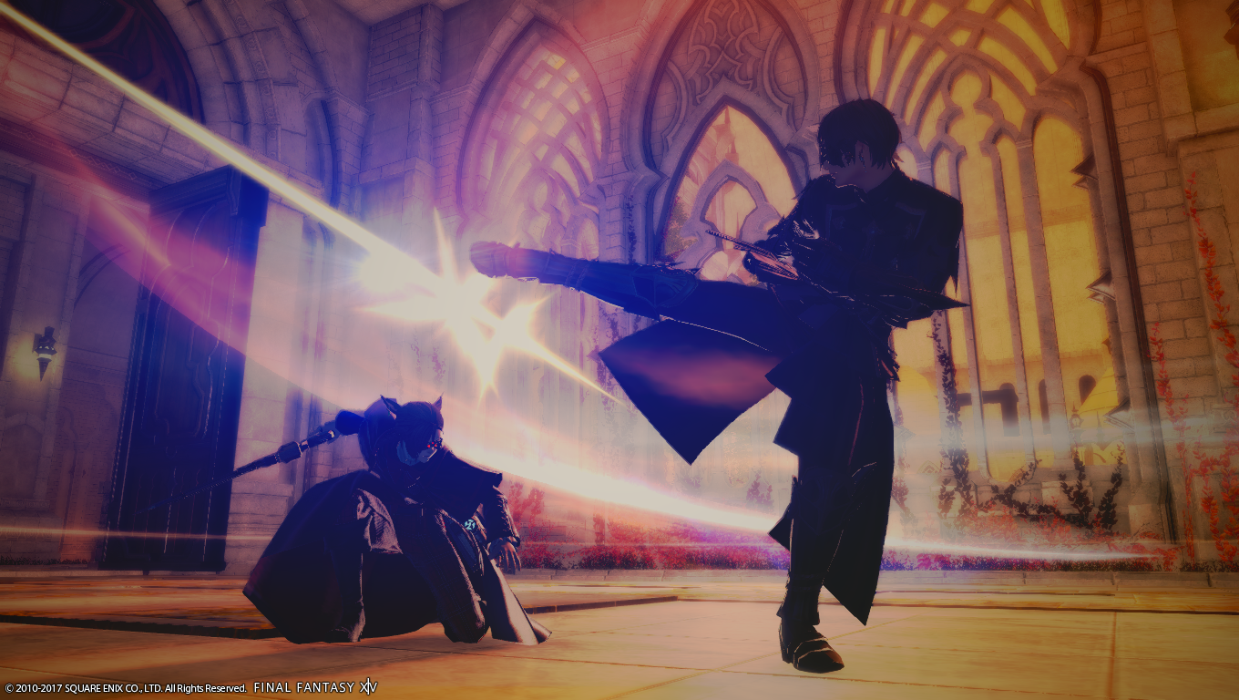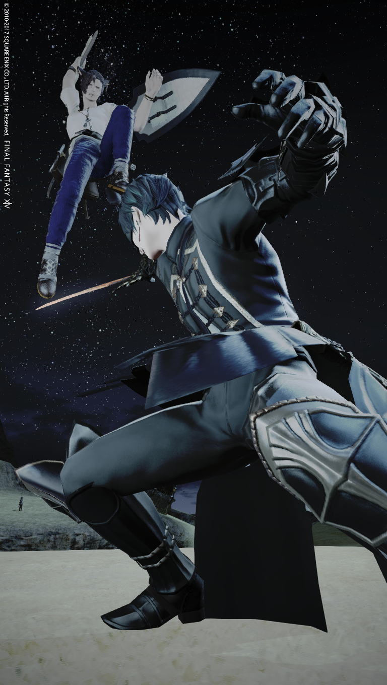 制限解除バハなどを一緒に回ったミコッテナイト(エレ鯖)、とそのサブキャラ(ガイア鯖)。あくまで忍者メインと言っているがそろそろ言い訳が厳しい。サブキャラは暗黒のアウラおじさん。